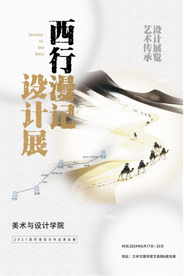 2024年6月17日至6月25日,新葡萄8883官网amg2021级环境设计1、2班“西行漫记”主题课程作业展在文昌楼6楼通道展出。“西行漫记”是从兰州出发,一路西行,最后到达敦煌莫高窟,沿途经过武威、张掖、酒泉等河西走廊地区,对本次课程相关内容进行了重点考察。