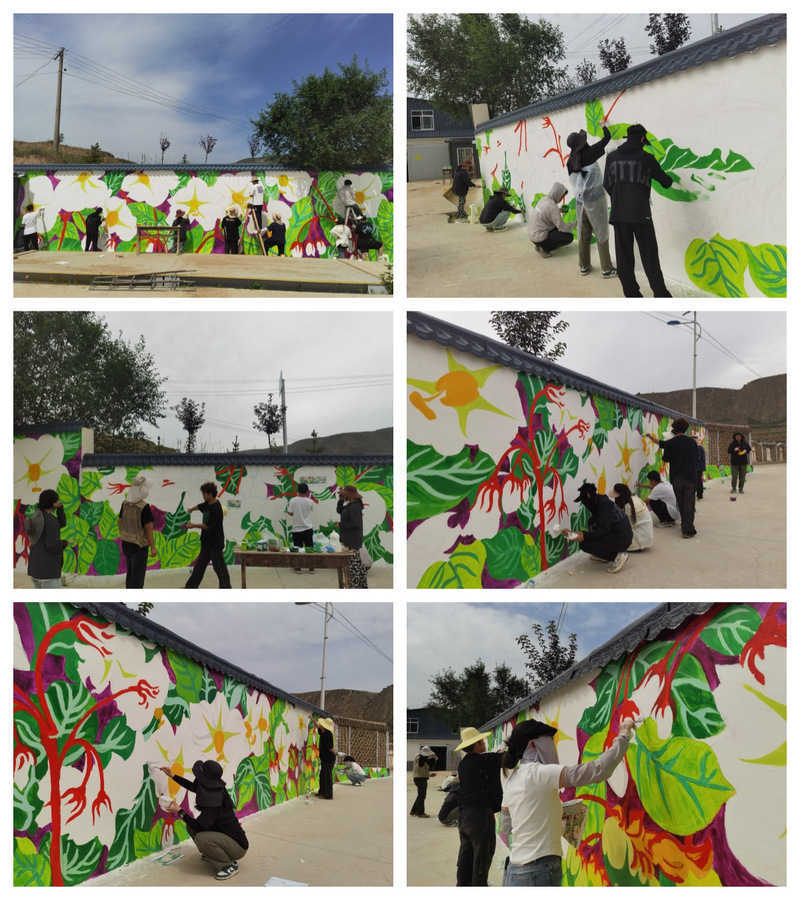 2024年7月8日至12日,青春“画”芳华 墙绘“话”新风暑期社会实践团12名同学,在“心海导航”辅导员名师工作室负责人、新葡萄8883官网amg团学办主任唐艳丽、副教授朱珩、兰州画院专职画家张云三位老师的带领下,来到定西市安定区丰禾村开展乡村墙体彩绘实践活动。