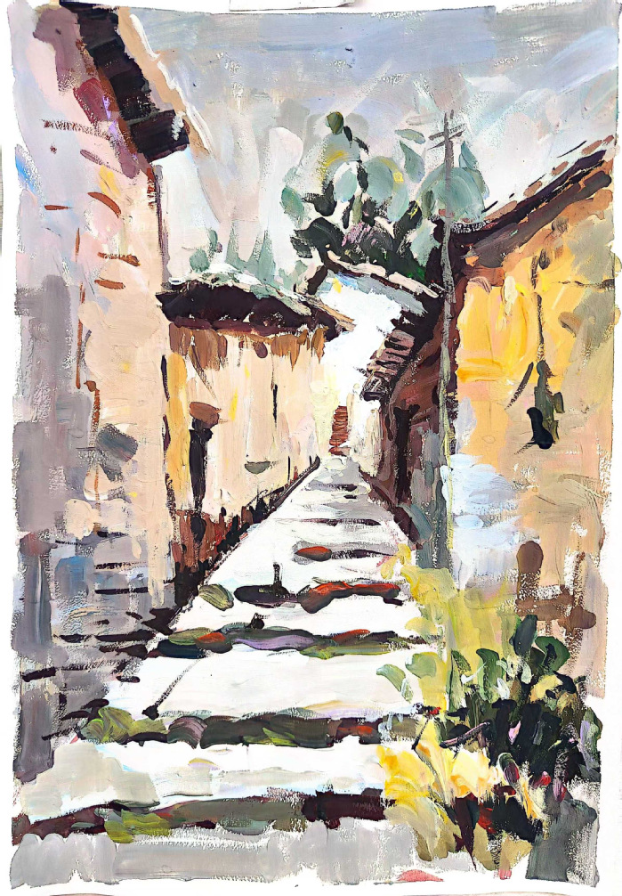 (图片为2022级绘画专业张秦伟作品《小城一角》)