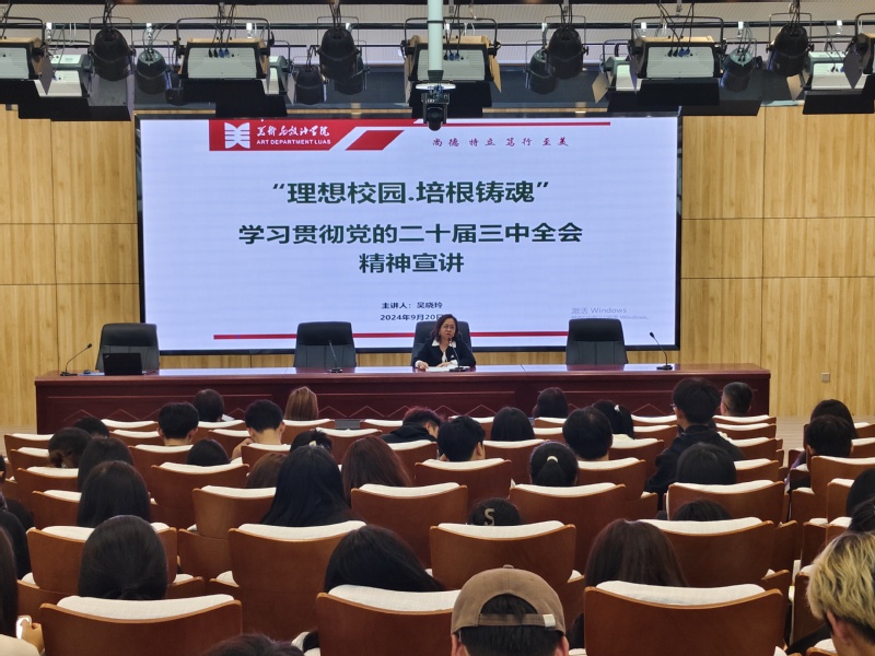 9月20日下午,新葡萄8883官网amg在文昌楼3楼学术报告厅开展“理响校园·培根铸魂”学习贯彻党的二十届三中全会精神宣讲活动。院党总支副书记、院长吴晓玲作宣讲报告,部分教师党员、全体学生党员及2024级全体新生参加。