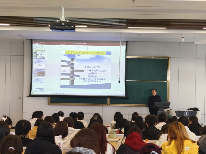 为帮助同学们树立正确的价值观,提高心理机能和充分发挥心理潜能,从而促进个性发展。2024年10月24日在文昌楼305阶梯教室,由学生处牵头组织,新葡萄8883官网amg、经济管理学院、外语学院联合开展2024年秋季大学生心理健康专题讲座。该讲座以“关爱生命,守护心灵——大学生自杀心理危机干预”为主题,由艺术职业学院副教授滕汉平老师讲授。