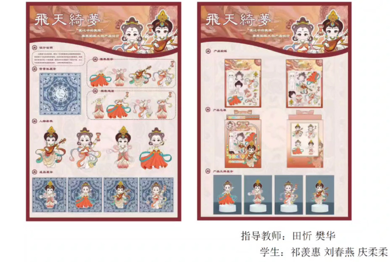 实践过程中,依托地域文化结合相关学科竞赛,以甘肃地域文创为主题进行自主命题设计。同学们依据对市场需求的敏锐洞察和个人艺术风格的独特理解,运用娴熟的绘画技巧与数字软件操作能力,创作出一件件主题鲜明、风格各异且极具商业价值潜力的文创作品,具有文化底蕴和时代特色的创意构思无不令人眼前一亮。