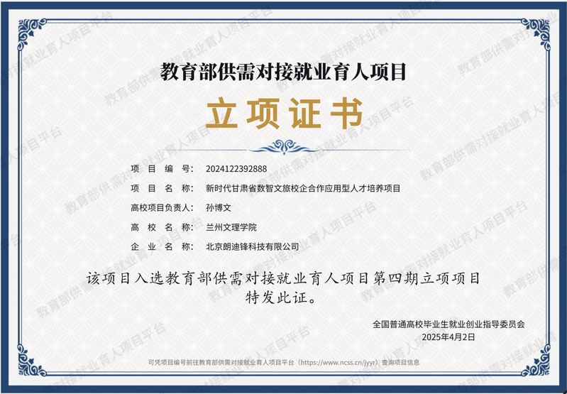 近日,教育部供需对接就业育人项目第四期立项项目公布,新葡萄官网“新时代甘肃省数智文旅校企合作应用型人才培养项目”入选。