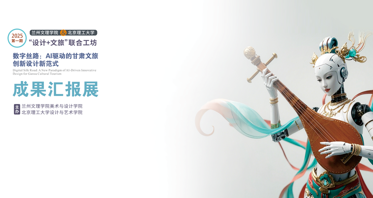 本次展览由新葡萄8883官网amg、北京理工大学设计与艺术学院联合举办,是响应两校“教育部对口支援西部地区高等学校计划”建设的务实行动和生动实践。当前在"数字中国"战略蓝图指引下,人工智能正以前所未有的深度和广度重塑文明传承的时空维度。甘肃作为一带一路黄金段与重要节点,承载着中华文明千年积淀的文化密码,更肩负着新时代"一带一路"文化数字化建设的国家使命。通过"AI+教育"教学范式变革,本次工坊旨在构建“传统文化解码—数字技术转译—文旅场景应用”全链条人才培养体系,进一步巩固和提升文旅产业、非遗保护等领域的特色优势,为甘肃省打造文旅强省贡献力量。此次与北京理工大学“本研联动+东西协作”,两校以"数字技术赋能文化表达"为内核,形成"文化智库+AI算法+场景设计"的创新矩阵。学生们运用生成式AI解构马家窑城市场景应用、解构敦煌纹样基因、通过数字孪生技术再现丝绸之路商贸场景等,借助智能算法充分挥洒创意、优化文旅服务生态,最终产出了《揽胜金城·筑梦兰马》动态视觉作品、《陶然街巷·智筑街景》城市景观设计等8组创新成果,实现了传统文化资源的创造性转化。展览为文化活态传承提供新路径,实现了教育链与产业链深度耦合,助推“数字丝路”建设从理论构想走向实践创新。