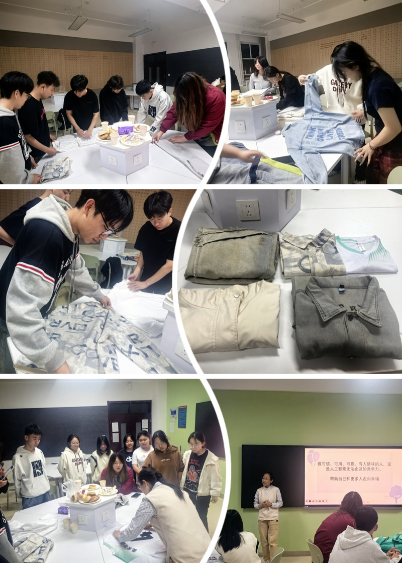 4月23日,学院开展“衣物整理方法学习与实践”活动。指导老师从物品分类、取舍原则到收纳技巧进行系统讲解,提出了以下整理原则并带领学生进行实操演练: