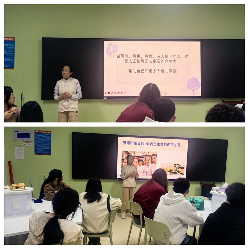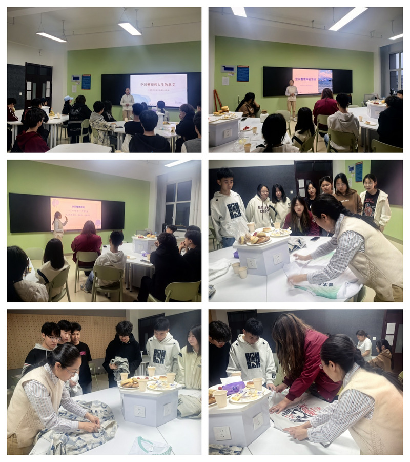 4月16日,学院组织学生在715教室观看影片《怦然心动的人生整理魔法》。影片通过主人公的整理之旅,传递了“整理不是简单的物品归类,而是对自我生活的重新审视与规划”的理念。观影后,学生们围绕“整理与心灵成长”展开热烈讨论,分享感悟:“整理让我意识到,舍弃冗余才能为真正重要的东西腾出空间”、“凌乱的环境会让人焦虑,而有序的空间能带来内心的平静”。此次观影为后续实践环节奠定了思想基础。