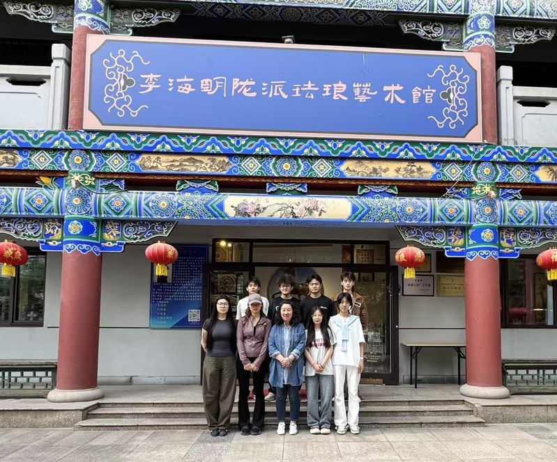 作为中国非遗艺术设计研究院研究员、国家一级工艺美术品设计师,李海明老师深耕法琅艺术数十載,其作品屡获国家级大奖,并多次入围中国民间文艺最高奖“山花奖”。此次参观活动,同学们通过对作品的欣赏和老师细致的讲解,直观感受到传统工艺"毫厘之间见功夫"的精益求精,提升了对形式美的感知力和艺术表达能力。