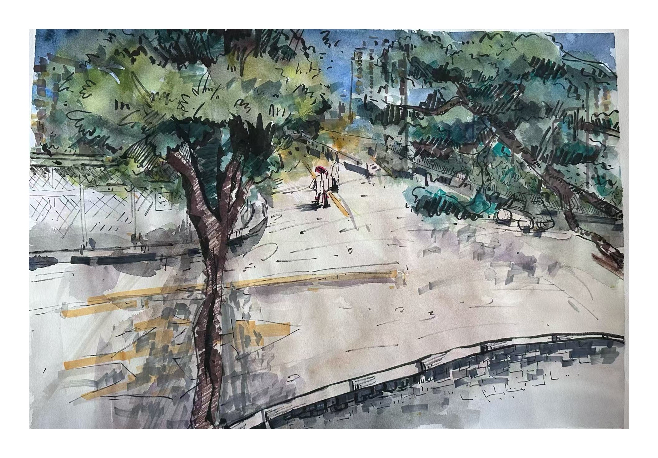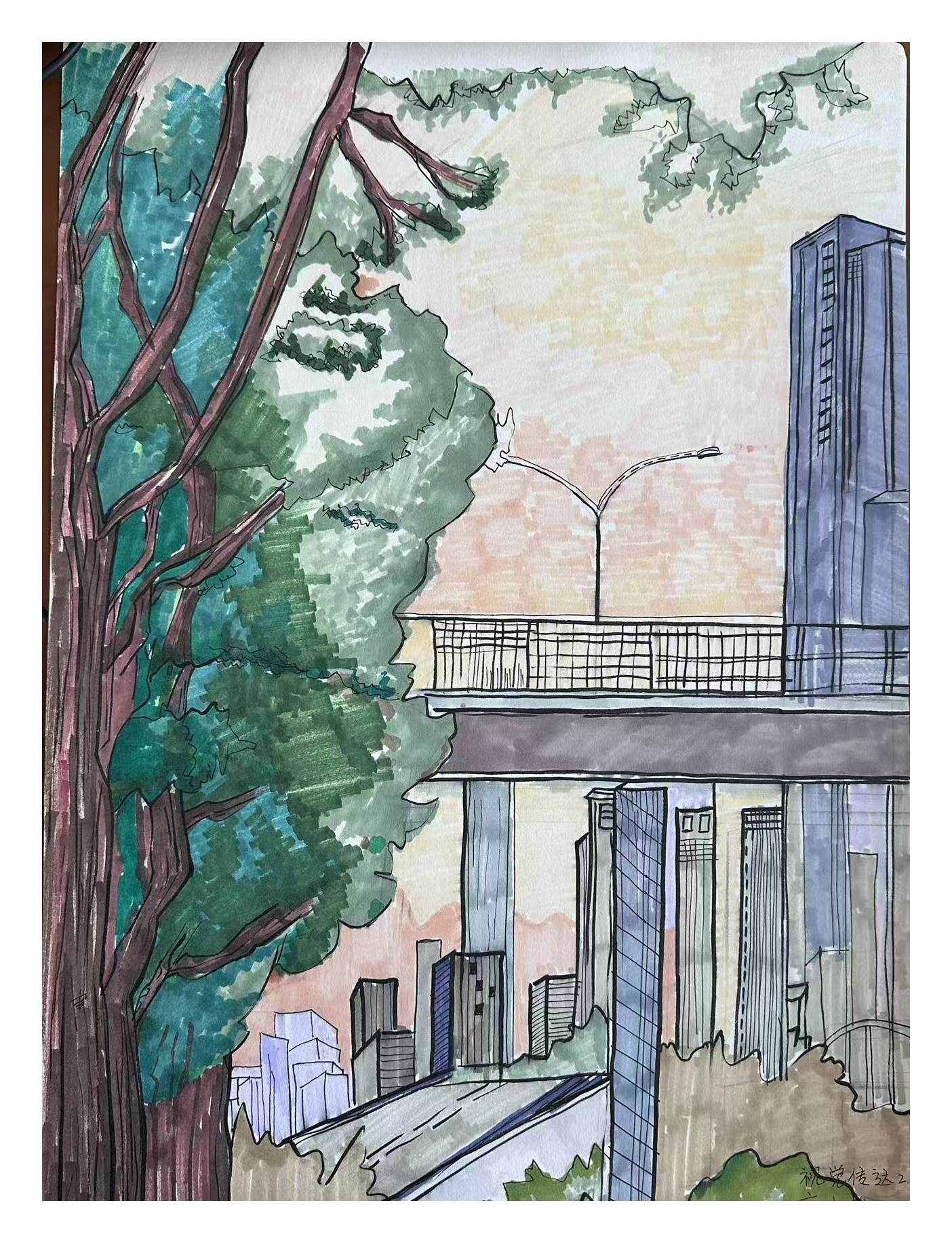 活动中同学们手持画笔走进校园的建筑群与春日景观带用手中的画笔勾勒出心中的魅力校园,用色彩挥洒那些熟悉的场景,校园的动态在他们的笔下纷纷呈现,每幅作品都充分反映了他们热爱校园、积极向上的精神风貌。