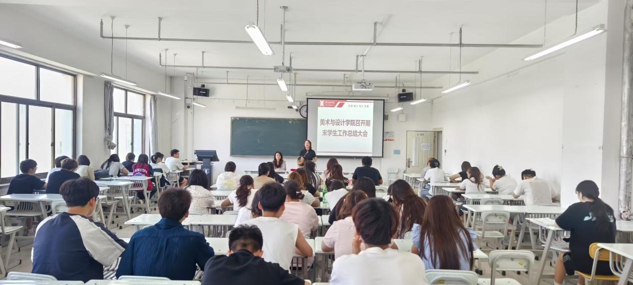 会上,唐老师对新葡萄官网本学期学生工作进行了全面的总结。本学期团学办从日常工作着手,以班级团支部为抓手,在青年学生中开展理论学习和宣讲活动,提高全院学生的理论素养。紧抓学风建设,结合学院分团委“画”中有“话”的学院特色,开展“以美慧心 铸魂育人”美育特色品牌活动,彰显学院塑造学生健全人格和美好心灵的育人特色;有效开展丰富多彩的校园文化活动,展现美院学子积极向上的精神风貌,激发同学们爱校爱美院的情怀;强化学院学生管理和服务工作,塑造和谐奋进美院的师生风貌;注重学术交流,深化产教融合,推进实践教学等组织大小型活动20次,且活动成果显著。同时完成了今年的五四评优、团员和党员发展推优、2025届毕业生团关系的转接、西部计划的推荐以及校级社会实践团队的组织申报等工作。
