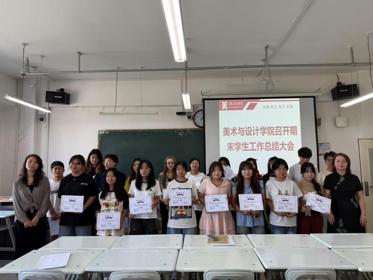 会上,唐老师对新葡萄官网本学期学生工作进行了全面的总结。本学期团学办从日常工作着手,以班级团支部为抓手,在青年学生中开展理论学习和宣讲活动,提高全院学生的理论素养。紧抓学风建设,结合学院分团委“画”中有“话”的学院特色,开展“以美慧心 铸魂育人”美育特色品牌活动,彰显学院塑造学生健全人格和美好心灵的育人特色;有效开展丰富多彩的校园文化活动,展现美院学子积极向上的精神风貌,激发同学们爱校爱美院的情怀;强化学院学生管理和服务工作,塑造和谐奋进美院的师生风貌;注重学术交流,深化产教融合,推进实践教学等组织大小型活动20次,且活动成果显著。同时完成了今年的五四评优、团员和党员发展推优、2025届毕业生团关系的转接、西部计划的推荐以及校级社会实践团队的组织申报等工作。